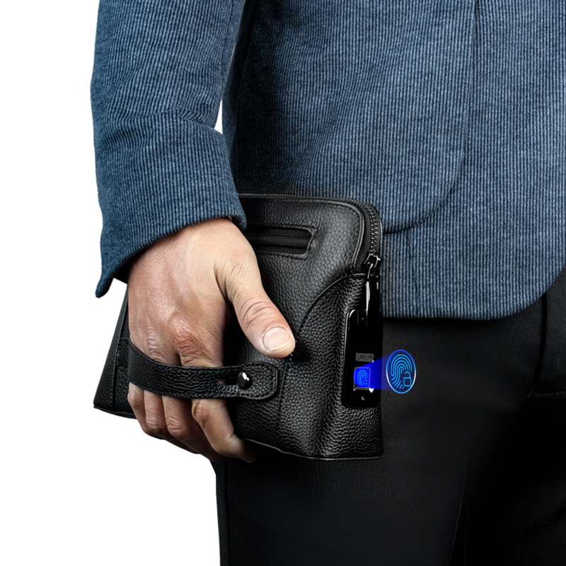 Size: 24*6*15.5 cm Material: genuine cow leather Color: black Net weight: 263 g Unlocking method: fingerprint Fingerprint memory capacity: 10 sets Each bag comes with a box, a charging cable, a manual and a reset key